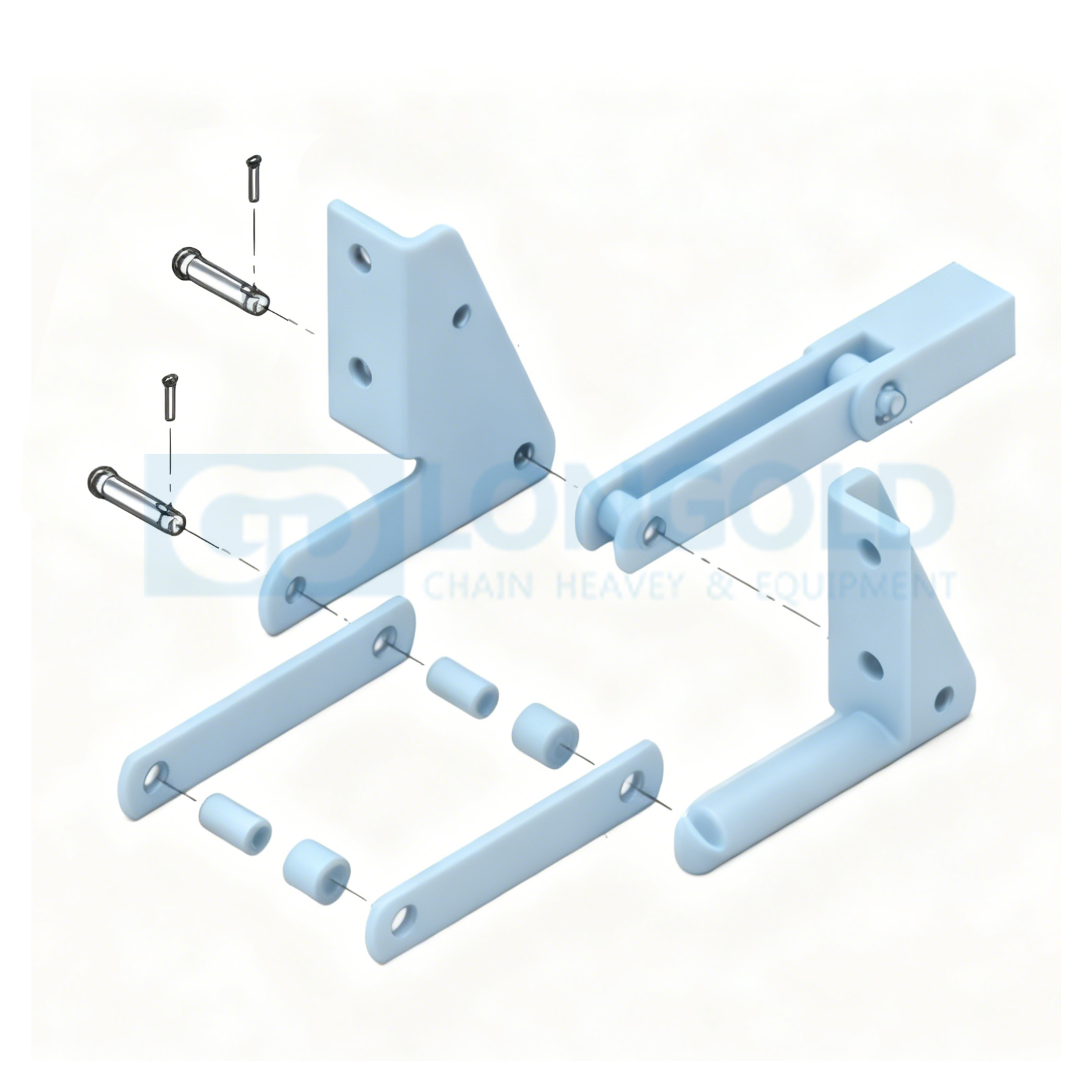 由于需要與污水直接接觸,所以這兩款規(guī)格的污水處理鏈除銷(xiāo)軸外,其它部件均采用工程塑料材質(zhì)。